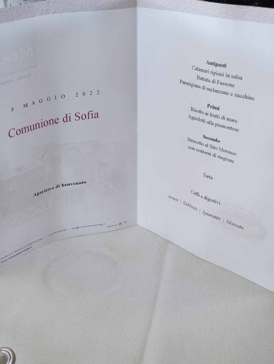 Introducing the Menu at Ristorante Hermitage & Location matrimoni ed eventi